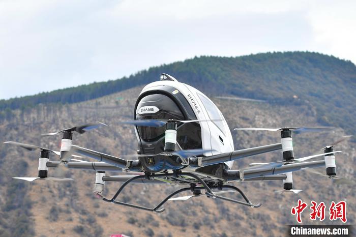 4月5日,西藏林芝第二十二屆桃花旅游文化節(jié)上,億航智能桃花載人無人機E-VTOL首次亮相海拔3000米高度,并成功首飛。首飛現(xiàn)場,無人機緩緩升空,引得市民、游客紛紛駐足仰望,降落之后,大家圍攏過來,近距離參觀體驗并拍照留念。據悉,億航智能已在國內合肥、杭州等地開展低空文旅項目,在全球19個國家,完成65000架次安全飛行。圖為載人無人機E-VTOL在西藏林芝上空飛行。貢確 攝