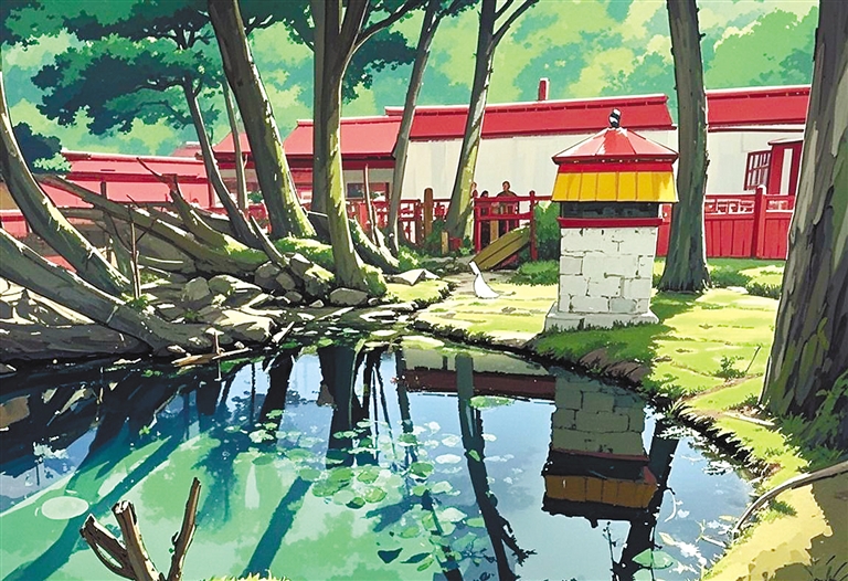 三個(gè)放學(xué)歸來(lái)的孩子蹲在石板邊,用泉水沖洗沾滿泥土的手,水珠順著手指滴落時(shí),忽然有斑頭雁群掠過(guò)泉面上空。他們屏息凝望的瞬間,宮崎駿動(dòng)畫中常見的“萬(wàn)物有”氣息,正從濕地里蒸騰的水霧中悄然漫出。