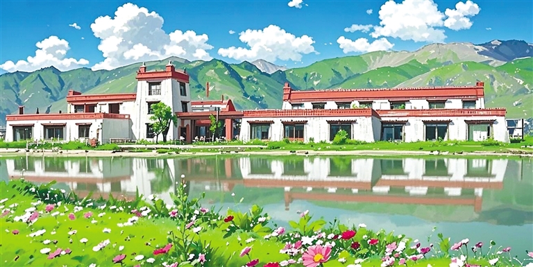 “我就是想以動(dòng)畫風(fēng)格給大家展示不一樣的堆龍。”旦增拉姆說(shuō)。只見她又將照片導(dǎo)入AI圖片生成軟件內(nèi),AI自動(dòng)識(shí)別圖像元素——經(jīng)幡的布料特性、水流的物理參數(shù)、建筑材質(zhì)的反光數(shù)據(jù)。輕點(diǎn)“生成”按鈕,1分23秒后,一張動(dòng)畫風(fēng)格的Shadada CoffeeX新型公共文化空間的圖片便呈現(xiàn)在眼前。重點(diǎn)不是技術(shù),是審美把關(guān),旦增拉姆指著屏幕上的失敗案例:“AI把青稞田處理成糖果色卡通,把圖書館渲染成賽博朋克風(fēng)格。我每天要調(diào)整無(wú)數(shù)次參數(shù),就像教AI理解什么是藏地美學(xué)?!彼米瞵F(xiàn)代化的數(shù)字工具,“描繪”著堆龍德慶區(qū)新的光影詩(shī)篇。