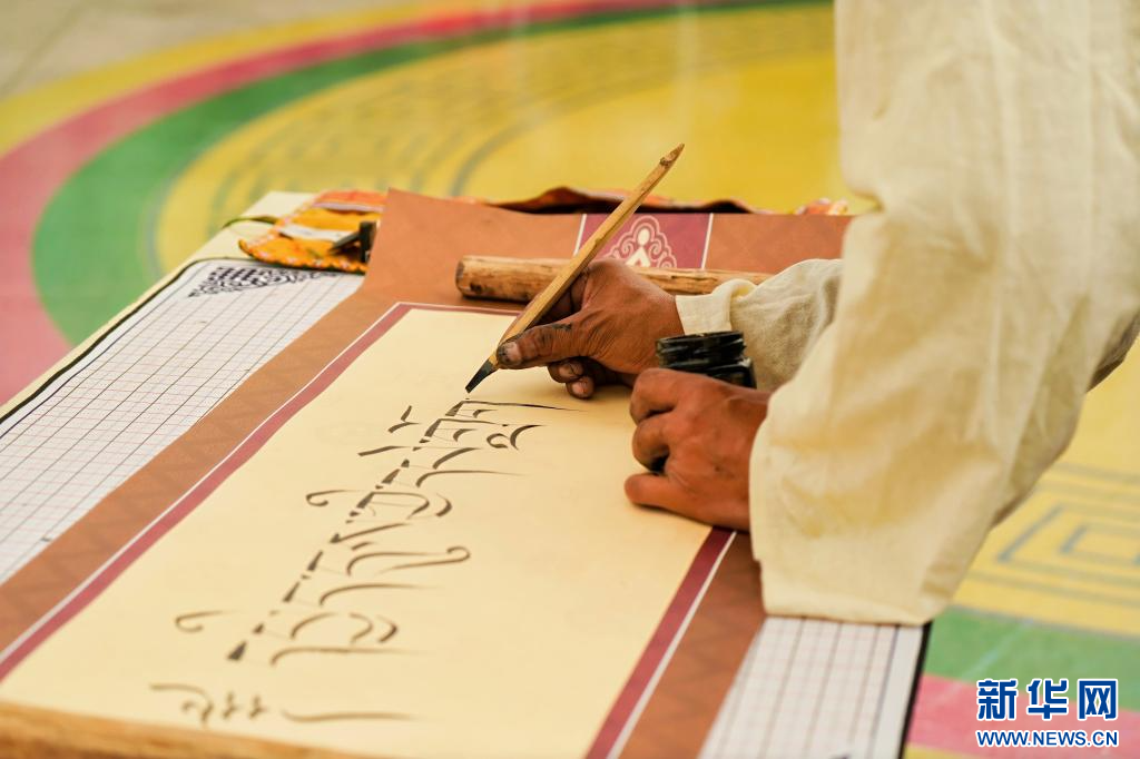 在活動(dòng)現(xiàn)場(chǎng)寫(xiě)下藏文書(shū)法“春日書(shū)會(huì)”。(受訪者供圖)