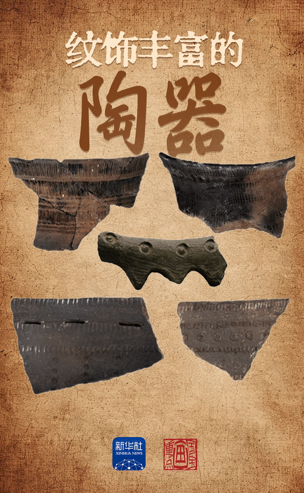 發(fā)現(xiàn)了各種有著紋飾的陶器碎片
