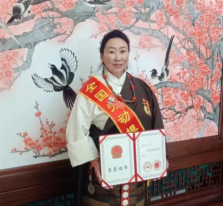 圖為米多展示“全國(guó)勞動(dòng)模范”榮譽(yù)證書(資料圖片)。