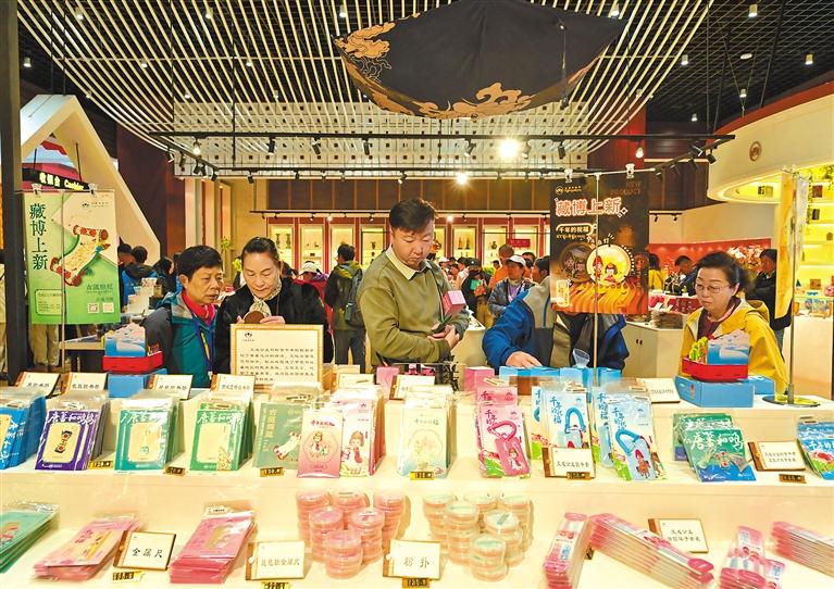 市民、游客在西藏博物館選購文創(chuàng)產(chǎn)品。記者 唐斌 攝