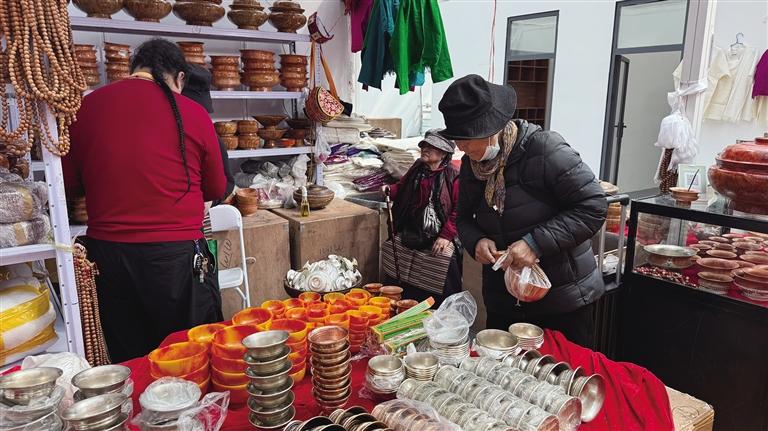參展商們也在最后一天全力沖刺,來自不同地域、經(jīng)營不同品類商品的商家在展會上均收獲頗豐。來自尼泊爾的新白瑪塔西綜合商店老板拉魯,此次展銷會帶來了木碗、玉碗、銅碗等二十多類特色產(chǎn)品。他笑著表示:“銷量挺不錯的,我們家的產(chǎn)品不僅品類豐富,價格也實惠。這已經(jīng)是我第八次來拉薩參加展銷會了,每次都能感受到拉薩消費者的熱情,也收獲滿滿?!?/p>