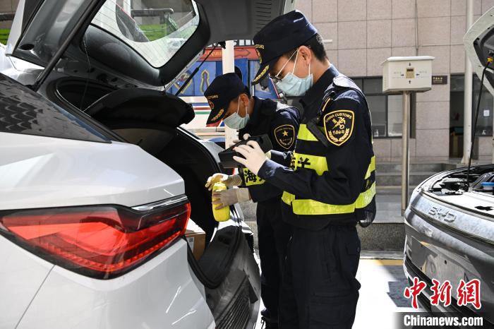 5月25日,在西藏自治區(qū)日喀則市吉隆縣的吉隆口岸,海關(guān)工作人員在對(duì)出口的國產(chǎn)新能源汽車進(jìn)行檢查。中新社記者 貢嘎來松 攝