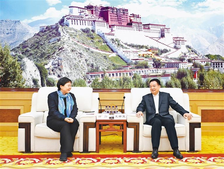 王君正代表自治區(qū)黨委、政府對謝力一行專程赴藏開展慰問演出表示歡迎,對中國文聯(lián)長期以來給予西藏的關(guān)心支持表示感謝。他說,黨的十八大以來,以習(xí)近平同志為核心的黨中央高度重視西藏工作,習(xí)近平總書記多次作出重要指示批示,為西藏明確了“穩(wěn)定、發(fā)展、生態(tài)、強(qiáng)邊”四件大事,提出了長治久安和高質(zhì)量發(fā)展的戰(zhàn)略目標(biāo),為我們做好工作指明了前進(jìn)方向、提供了根本遵循。十屆自治區(qū)黨委深入貫徹落實(shí)習(xí)近平總書記關(guān)于西藏工作的重要指示和新時(shí)代黨的治藏方略,持之以恒抓好“穩(wěn)定、發(fā)展、生態(tài)、強(qiáng)邊”四件大事落實(shí),努力推動(dòng)經(jīng)濟(jì)社會(huì)發(fā)展各項(xiàng)事業(yè)不斷取得新成績,長治久安的基礎(chǔ)更加穩(wěn)固,高質(zhì)量發(fā)展保持良好勢頭,主要經(jīng)濟(jì)指標(biāo)增速位居全國前列,生態(tài)保護(hù)扎實(shí)推進(jìn),邊境地區(qū)建設(shè)不斷加強(qiáng),民生福祉持續(xù)增進(jìn),全社會(huì)呈現(xiàn)出一派欣欣向榮的良好發(fā)展景象。