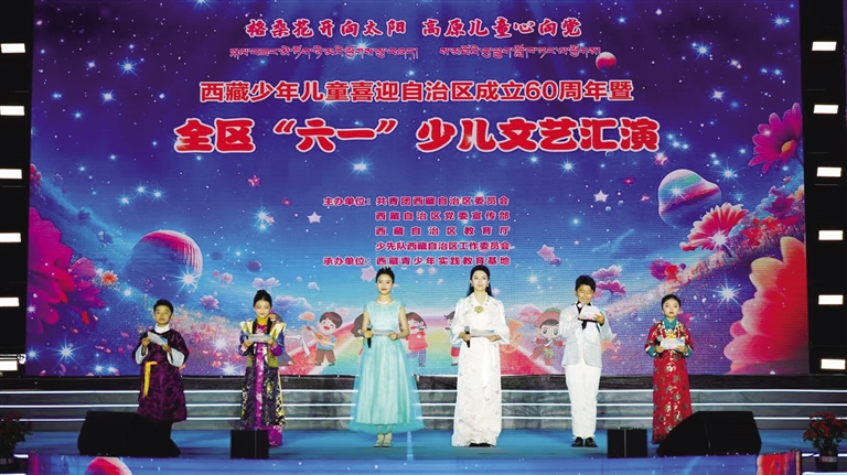近日,“格?;ㄩ_向太陽(yáng)·高原兒童心向黨”西藏少年兒童喜迎自治區(qū)成立60周年暨全區(qū)“六一”少兒文藝匯演在拉薩市群眾文化體育中心舉辦。來(lái)自西藏各市(地)小學(xué)和幼兒園的300名小演員以傳統(tǒng)藏戲、主旋律歌舞、詩(shī)朗誦、衛(wèi)國(guó)戍邊情景劇、拉薩與定日結(jié)對(duì)交友等形式,為全區(qū)各族少年兒童獻(xiàn)上一場(chǎng)充滿民族特色與時(shí)代氣息的文化盛宴。