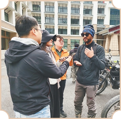 吉隆鎮(zhèn)上,記者偶遇一支由16輛摩托車、20余人組成的騎行車隊(duì)。領(lǐng)隊(duì)蘇詹·巴斯內(nèi)特來自加德滿都,此行他帶著16名澳大利亞游客,駕駛摩托車環(huán)行中尼兩國邊境地區(qū)?!坝媱澬谐?1天,路程超過2500公里,將會途經(jīng)游客們最為期待的拉薩、珠穆朗瑪峰景區(qū)等地?!卑退箖?nèi)特說。