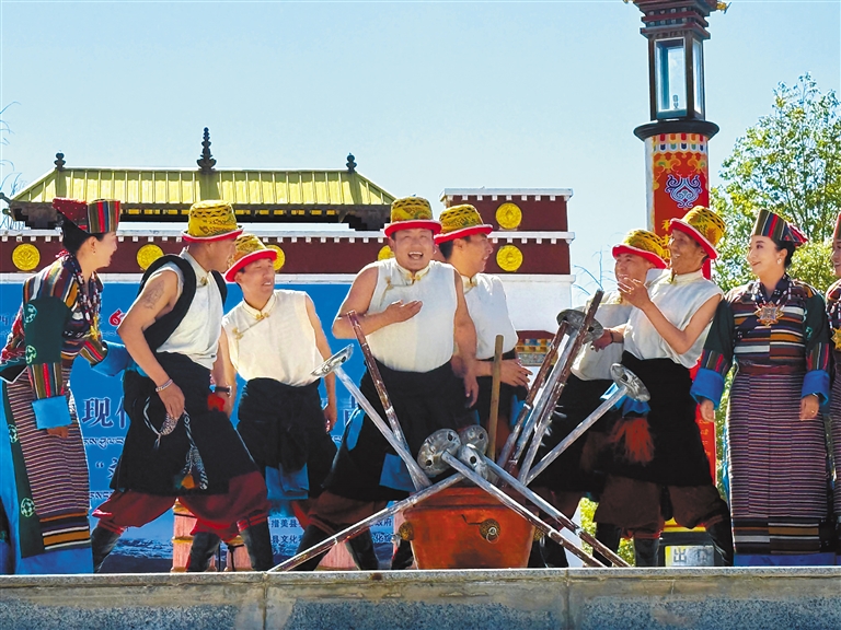 2008年,扎扎服飾被正式列入國家級非物質(zhì)文化遺產(chǎn)名錄。措美縣投資建立的扎扎服飾傳習所于2015年正式運營。至此,這門老手藝有了“大本營”,還成了村里增收的“金疙瘩”。如今,扎扎服飾不只是村里婦女逢年過節(jié)的盛裝,更是吸引游客了解扎雜村的招牌。措美縣還以扎扎服飾的傳說為原型,創(chuàng)作歌舞劇《文成公主草原情》《扎扎情緣》,制作傳承保護影像,讓這項高原上的獨特技藝與文化久久流傳。