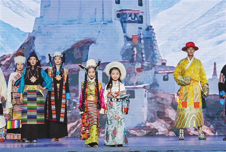 開幕式演出,模特展示西藏各地服飾。