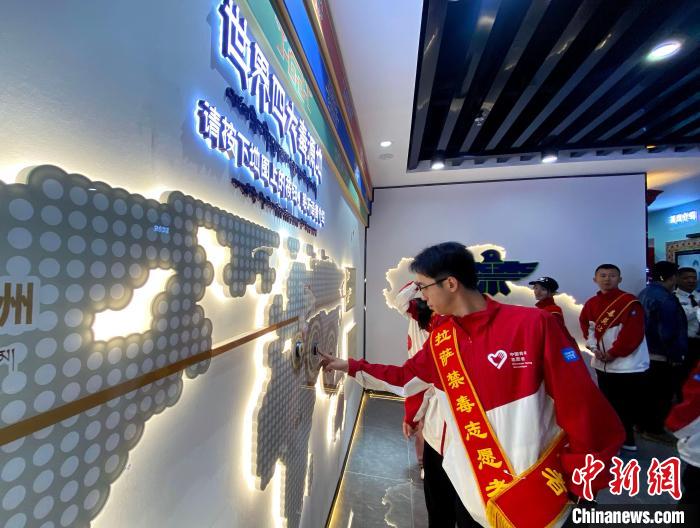 圖為6月26日,禁毒志愿者在西藏自治區(qū)禁毒教育基地參與互動體驗(yàn)。李林 攝