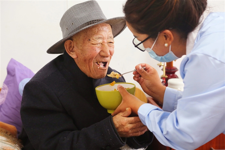 陽(yáng)光穿過(guò)明凈的玻璃窗,溫柔地灑在80歲失明老人拉巴次仁手中的木碗上。他捧著熱騰騰的飯菜,幸福的笑容在臉上肆意綻放:“在這里,一日三餐有人端到跟前,臟衣服剛換下就有人洗凈送回,生病也不愁沒(méi)人管?!崩先搜哉Z(yǔ)間滿是對(duì)生活的感激。