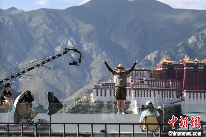 7月7日,游客在西藏拉薩市的一家景觀咖啡廳拍攝以布達拉宮為背景的 “旱地拔蔥” 。“旱地拔蔥” 式的創(chuàng)意拍攝在拉薩掀起打卡熱潮。游客借助搖臂攝像機,高高躍起,與雄偉的布達拉宮同框,拍出極具視覺沖擊力的“電影級”大片。據(jù)悉,拍攝“旱地拔蔥”的景觀咖啡廳從今年5月開業(yè)以來,平均每天接待游客300到500人次。中新社記者 貢嘎來松 攝