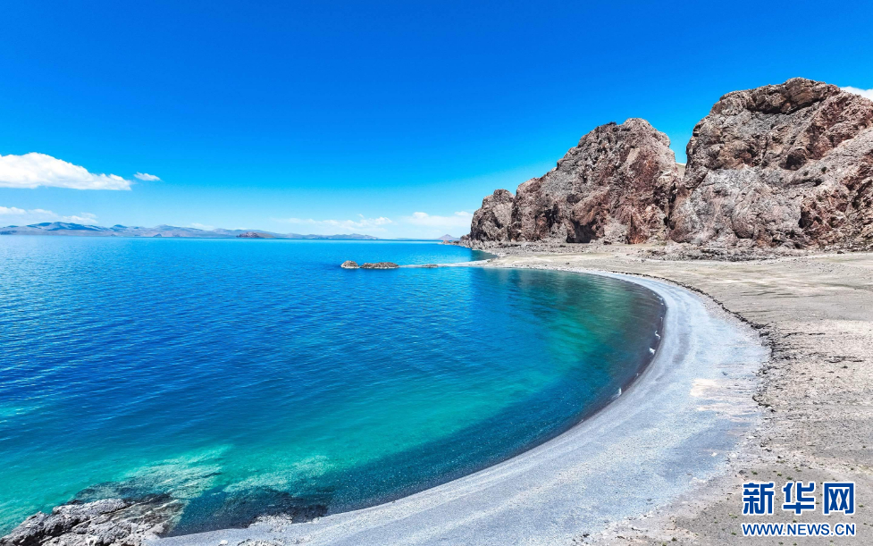 圖為夏日納木錯(7月7日攝,無人機(jī)照片)。新華網(wǎng)發(fā) 車宇軒 攝