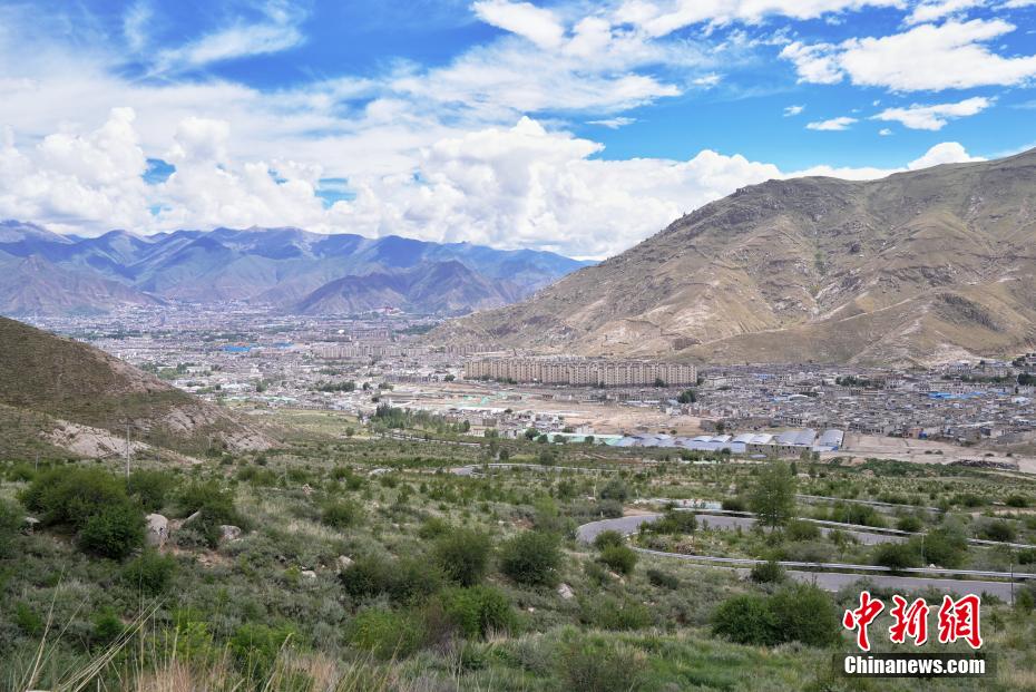 7月16日,從西藏拉薩娘熱溝遠眺,南北山的綠色植被環(huán)抱拉薩城區(qū)。據(jù)了解,拉薩南北山綠化工程于2021年啟動,東起墨竹工卡縣尼瑪江熱鄉(xiāng),西至曲水縣茶巴拉鄉(xiāng),東西綿延近200公里,計劃完成國土綠化面積206.72萬畝,助力拉薩成為生態(tài)宜居的高原首府城市。中新社記者 張祥毅 攝