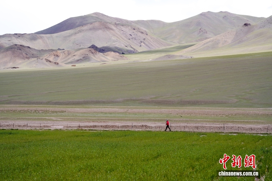 7月20日,在西藏阿里地區(qū)革吉縣文布當(dāng)桑鄉(xiāng)的人工種草基地,一位農(nóng)牧民在巡視草場。為解決當(dāng)?shù)囟旧笥貌堇щy,減輕天然草場壓力,2016年起文布當(dāng)桑鄉(xiāng)規(guī)劃建設(shè)人工種草基地。截至2024年,已種植人工草場3590畝,草業(yè)收入229.3萬元人民幣,有效帶動當(dāng)?shù)剞r(nóng)牧民就業(yè)創(chuàng)收和推動生態(tài)可持續(xù)發(fā)展。中新社記者 張祥毅 攝