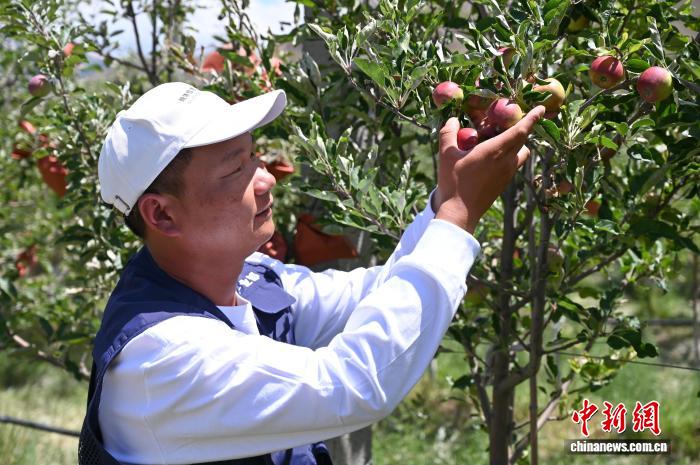 蘋果種植不僅“鎖”住了風(fēng)沙,更帶來了“甜日子”。次仁卓嘎和眾多村民一樣,在基地就近務(wù)工獲得穩(wěn)定收入。李世銀介紹,僅附近的朗塞嶺村,幾乎每戶都有人在基地務(wù)工,每戶年增收約5萬元(人民幣,下同)至6萬元。該基地于2020年建設(shè),現(xiàn)種植已達(dá)8200畝。2023年首銷4000畝蘋果,實(shí)現(xiàn)銷售額276萬元;2024年銷售額躍升至385萬元。產(chǎn)品不僅在西藏區(qū)內(nèi)及國內(nèi)其他省市銷售,去年還進(jìn)入尼泊爾市場?!颁N路完全不用愁?!崩钍楞y信心滿滿。