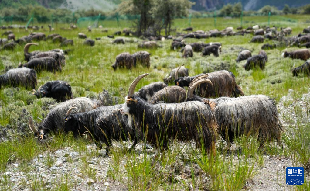 這是邊壩縣黑山羊養(yǎng)殖基地的邊壩黑山羊(7月20日攝)。新華社記者 晉美多吉 攝