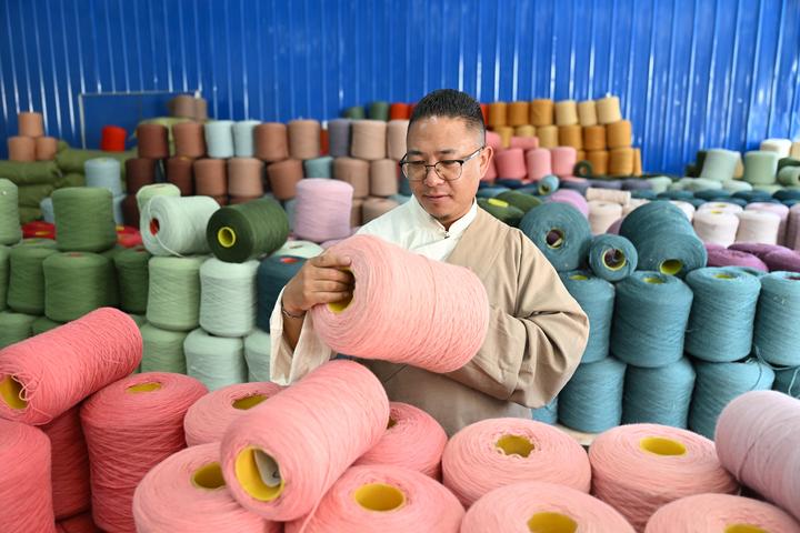 旦增稱(chēng)來(lái)正在檢查染色后的紗線。新華社記者 李鑫 攝
