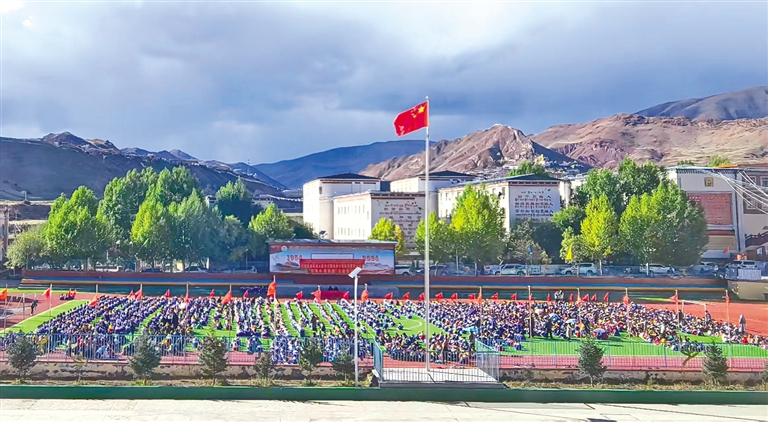 七十余載櫛風(fēng)沐雨,丁青縣小學(xué)早已舊貌換新顏。昔日的鐵皮房、泥土地,已被占地近3萬平方米、建筑面積超1.2萬平方米的現(xiàn)代化校園取代。寬敞明亮的教學(xué)樓、標(biāo)準(zhǔn)化的運(yùn)動(dòng)場(chǎng)、齊全的各類功能教室,促進(jìn)了孩子們的全面發(fā)展。截至2024年9月,學(xué)校擁有學(xué)生2650余名,教學(xué)班級(jí)49個(gè)。一支136人的高素質(zhì)教師隊(duì)伍扎根于此,教書育人。