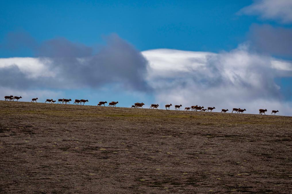 每年7月,在這里出生的藏羚羊幼崽會跟隨母羊遷徙至棲息地。每到這時,藏羚羊們會齊聚森隆藏布河西岸,陸續(xù)過河。