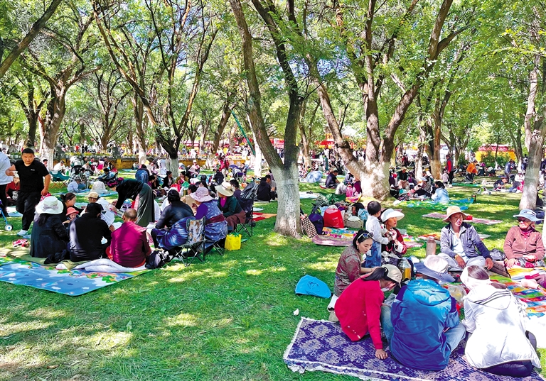 群眾在羅布林卡過林卡。記者 旦增蘭澤 攝