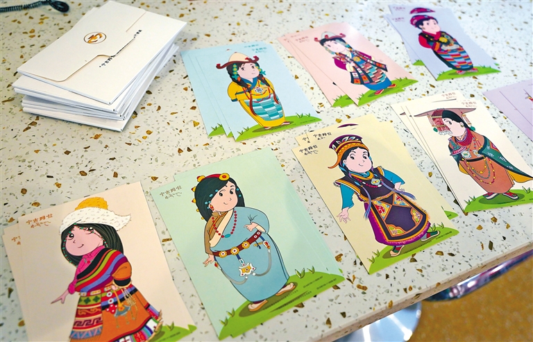 目前,藏博郵禮郵政服務點已向公眾免費提供13枚主題印章的集章服務。其中,鎮(zhèn)館之寶章以昌都卡若遺址出土的雙體陶罐為原型,將新石器時代的歷史厚重凝練于方寸之間;格?;ㄅc張大人花章則以高原特色花卉為媒,定格雪域的生態(tài)之美;而博物館原創(chuàng)卡通形象“寧吉姆啦”的萌趣造型,更以年輕化表達拉近了公眾與文化遺產的距離。此外,還特別提供了手寫藏文祝福服務——工作人員日均書寫40至70張、旺季單日超百張的藏文版“扎西德勒”,這不僅承載著語言藝術的魅力,更以筆尖的溫度將人文關懷鐫刻成游客珍藏的“文化信物”。