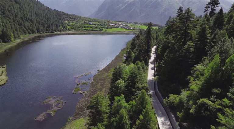 林芝市波密縣古鄉(xiāng)嘎朗村農(nóng)村公路。記者 余書(shū)冉