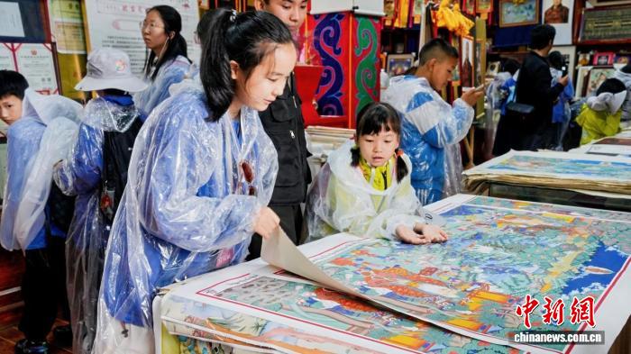 圖為“粵藏同行新時代·石榴籽一家親”活動現(xiàn)場學(xué)生體驗繪制民族團(tuán)結(jié)卷軸繪畫。林芝市文旅局供圖