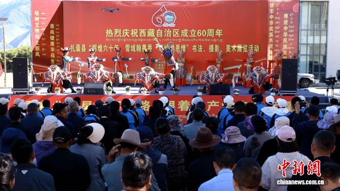 開幕式上,藏族舞蹈與傳統(tǒng)音樂交織,來自扎囊縣和鄰近曲松縣的表演者以靈動舞姿詮釋高原生活的熱情,歡快的節(jié)奏讓現(xiàn)場掌聲不斷。這場融合了視覺與聽覺的藝術(shù)開場,為展覽營造了濃郁的文化氛圍。