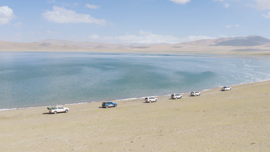 這片藏北高原,是高原荒漠生態(tài)系統(tǒng)的代表地區(qū),有著星羅棋布的湖泊,空曠無邊的草場以及皚皚的雪山和冰川。在這片一直延伸到天際的巨毯之上,我們的車隊(duì)不過是幾粒被風(fēng)推著的沙子,在縱橫交錯(cuò)的褶皺上掙扎著挪動。
