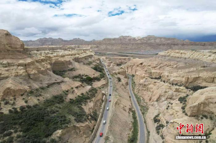 圖為9月2日,參加“天上阿里·云巔自駕”活動的游客車隊(duì)行駛在札達(dá)縣土林景區(qū)(無人機(jī)照片)。閆志國 攝