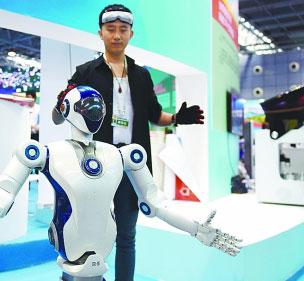 在全國大眾創(chuàng)業(yè)萬眾創(chuàng)新活動(dòng)周北京會(huì)場主題展上,工作人員在展示一款仿生機(jī)器人。新華社發(fā)