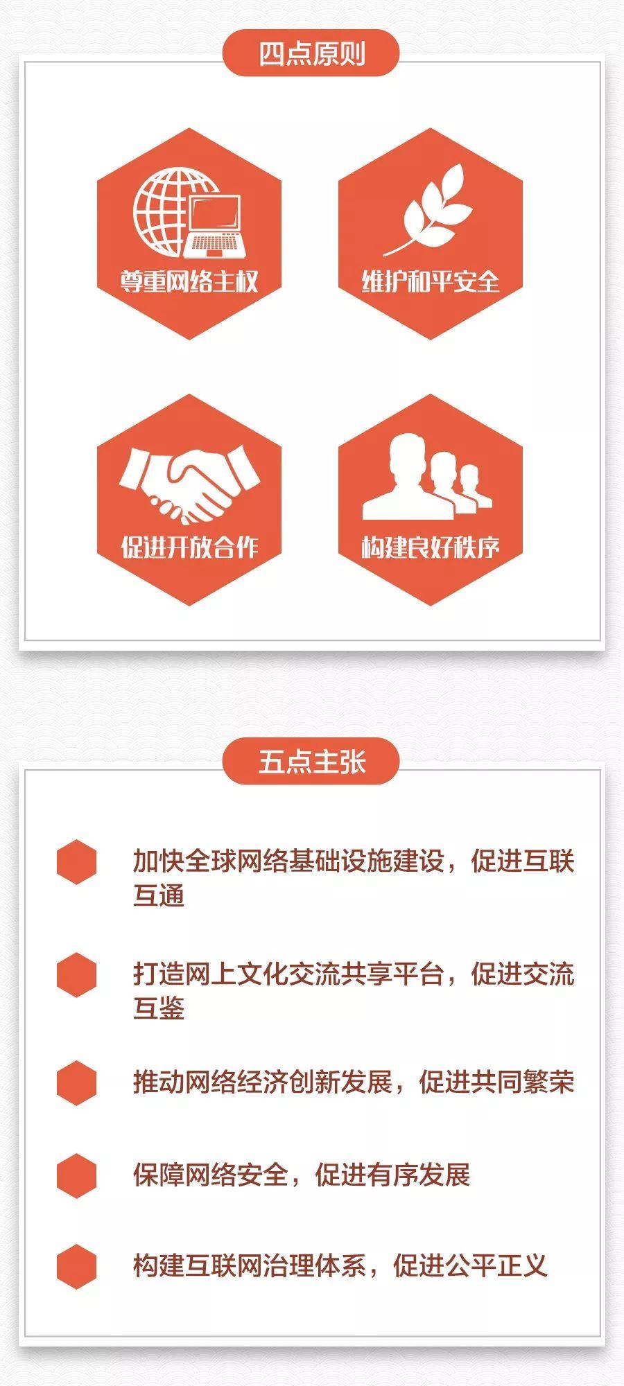 習(xí)近平曾指出,互聯(lián)網(wǎng)發(fā)展是無國界、無邊界的,利用好、發(fā)展好、治理好互聯(lián)網(wǎng)必須深化網(wǎng)絡(luò)空間國際合作,攜手構(gòu)建網(wǎng)絡(luò)空間命運共同體。要理直氣壯維護我國網(wǎng)絡(luò)空間主權(quán),明確宣示我們的主張。為此,習(xí)近平提出“四點原則”和“五點主張” :