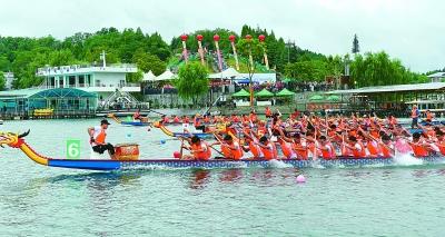 在四川省綿陽(yáng)市舉行的第七屆綿陽(yáng)(仙海)端午文化旅游節(jié)龍舟比賽。 新華社記者 陳地?cái)z