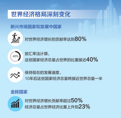 上一個(gè)百年是世界發(fā)生巨變的百年,是人類歷史上驚心動(dòng)魄的百年。就世界秩序而言,最大的變動(dòng)是發(fā)生了兩次世界大戰(zhàn),美國(guó)成為世界上最強(qiáng)大的國(guó)家,西方集團(tuán)確立。還有一個(gè)變動(dòng)就是俄國(guó)十月革命爆發(fā),蘇聯(lián)成為世界上第一個(gè)社會(huì)主義國(guó)家,世界社會(huì)主義興起,社會(huì)主義陣營(yíng)出現(xiàn)。第二次世界大戰(zhàn)后,兩方面力量在冷戰(zhàn)中對(duì)峙了幾十年,最終以東歐劇變、蘇聯(lián)解體而結(jié)束,美國(guó)成為世界上唯一超級(jí)大國(guó)。同時(shí),還有一個(gè)變動(dòng)影響巨大,那就是民族獨(dú)立運(yùn)動(dòng)興起,資本主義殖民體系瓦解,發(fā)展中國(guó)家紛紛實(shí)現(xiàn)民族獨(dú)立。伴隨著經(jīng)濟(jì)全球化加速推進(jìn),不少發(fā)展中國(guó)家獲得長(zhǎng)足發(fā)展,新興市場(chǎng)國(guó)家和發(fā)展中國(guó)家整體力量呈現(xiàn)上升趨勢(shì)。