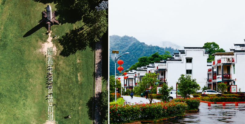 2018年7月29日,瑞金市率先在贛南脫貧摘帽,“共和國(guó)搖籃”在全面建成小康社會(huì)道路上邁出關(guān)鍵一步。左圖為2018年7月21日拍攝的江西瑞金市紅軍烈士紀(jì)念塔的鳥瞰圖(黃龍/攝)。右圖為2019年5月6日拍攝的華屋村新貌(新華社記者 蘭紅光/攝)。華屋村位于江西瑞金市葉坪鄉(xiāng),是遠(yuǎn)近聞名的“紅軍村”。