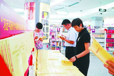 為配合“不忘初心、牢記使命”主題教育,北京圖書大廈專門設(shè)立《習(xí)近平新時代中國特色社會主義思想學(xué)習(xí)綱要》圖書專臺,連日來深受讀者喜愛。圖為7月25日,讀者正在認真閱讀《習(xí)近平新時代中國特色社會主義思想學(xué)習(xí)綱要》一書。本報記者 閆匯芳攝/光明圖片