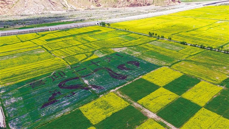 墨竹工卡縣農(nóng)業(yè)農(nóng)村局相關(guān)負責人告訴記者,這次的創(chuàng)意油菜花田和往年相比大不相同,為了迎接黨的二十大勝利召開,他們?nèi)α?00畝地人工種植了專門引進的四種彩色油菜花歷時兩個多月它們開花啦!看出這是什么圖案了嗎?現(xiàn)在記者給你揭曉(最上面是喜迎二十大字,字下中間是哈達、左邊是代表松贊干布和文成公主,右邊是愛心)。怎么樣,大家看出來了嗎?現(xiàn)在扎西崗村的創(chuàng)意油菜花都開了,從現(xiàn)在開始到接下來的半個月都是賞花期,一起去打卡墨竹工卡縣鄉(xiāng)村觀賞小油菜花的勝地吧,喜歡攝影的朋友更不能錯過哦?。▓D由洛克提供)