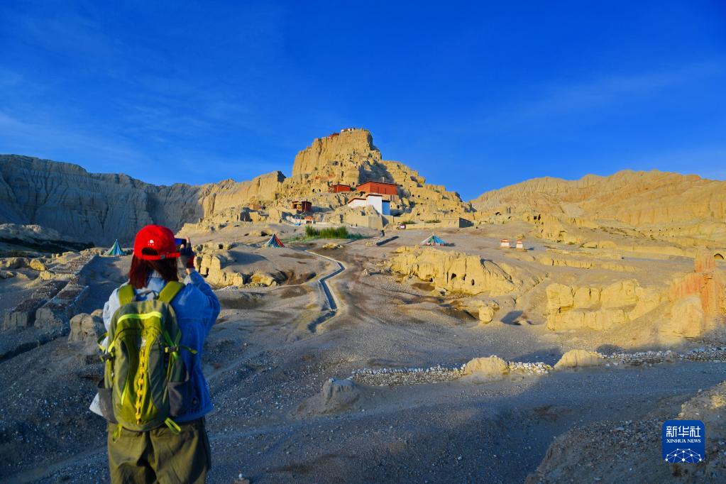 8月3日,游客在西藏札達(dá)縣拍攝古格王國(guó)遺址。新華社記者 張汝鋒 攝