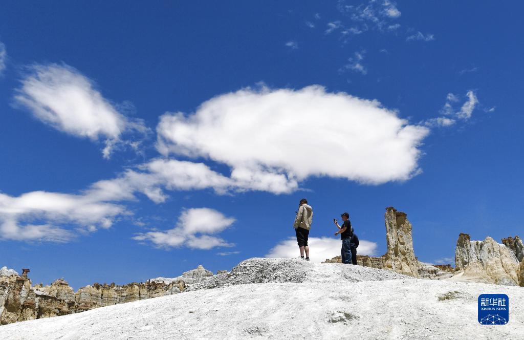 8月3日,游客參觀西藏札達(dá)縣的札達(dá)土林。新華社記者 張汝鋒 攝