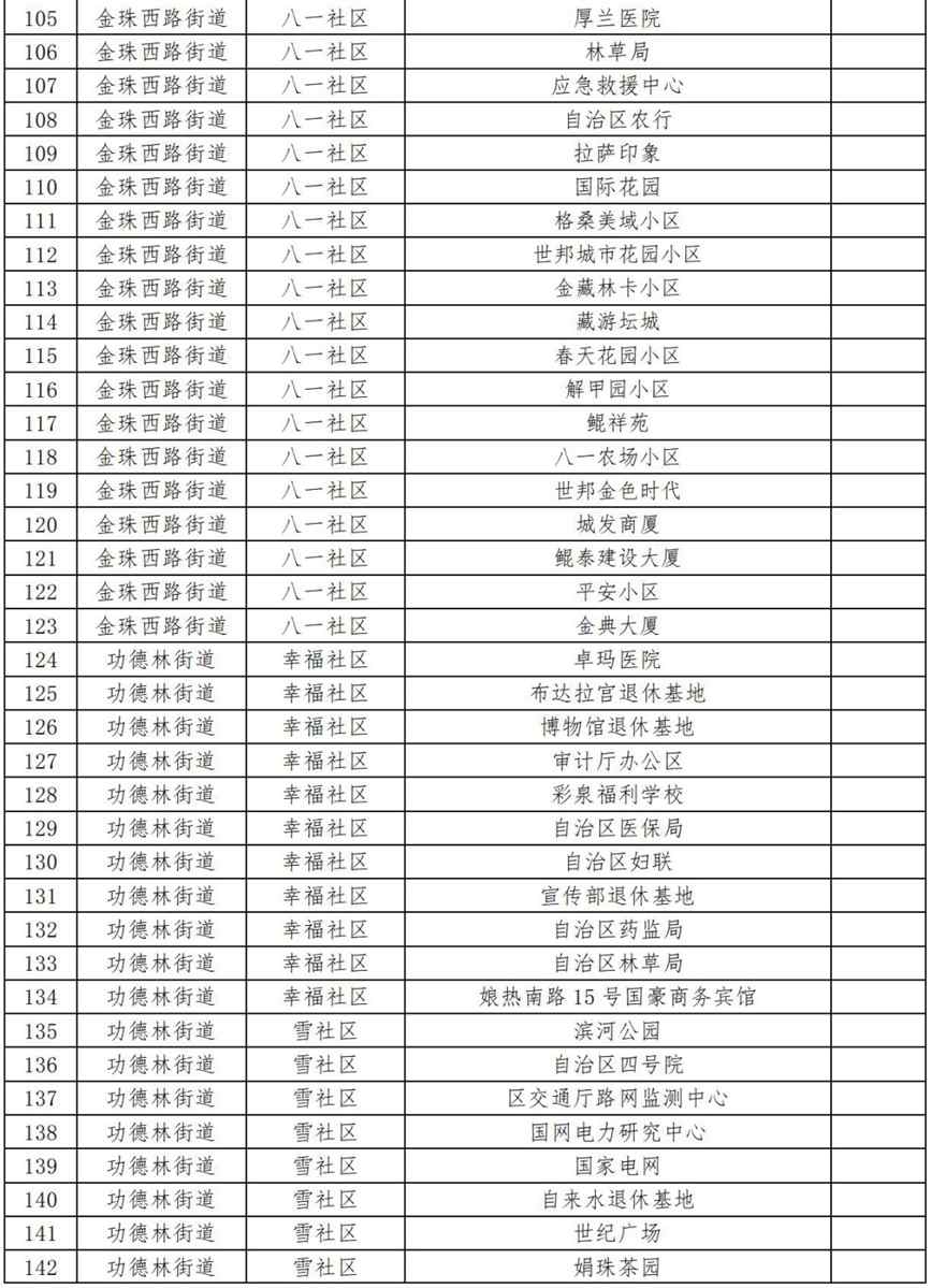 14.金珠西路街道八一社區(qū)一、二、三、六網(wǎng)格(自治區(qū)商務(wù)廳、紅十字會(huì)、八一校、老劉出租房、云水瑤、城發(fā)大廈、當(dāng)巴小學(xué)、城投大廈、藏藥博物館、八一菜市場、厚蘭醫(yī)院、林草局、應(yīng)急救援中心、自治區(qū)農(nóng)行、拉薩印象、國際花園);