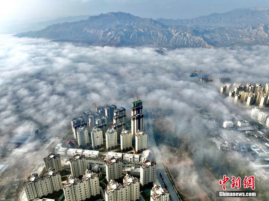 秋日,航拍青海省海東市化隆縣的黃河谷地,一層薄霧如飄紗,籠罩著河面,岸邊現(xiàn)代建筑恍如穿破云海,蔚為壯觀。黃河發(fā)源于青海省,流經化隆縣168公里。圖為河面籠罩薄霧,城市建筑猶如穿云海。 李玉峰 攝