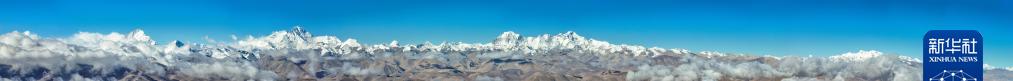 這是喜馬拉雅山脈五座海拔8000米以上的高峰。從左到右依次為:馬卡魯峰、洛子峰、珠穆朗瑪峰、卓奧友峰、希夏邦馬峰(5月26日攝,拼接照片)。新華社記者 孫非 攝