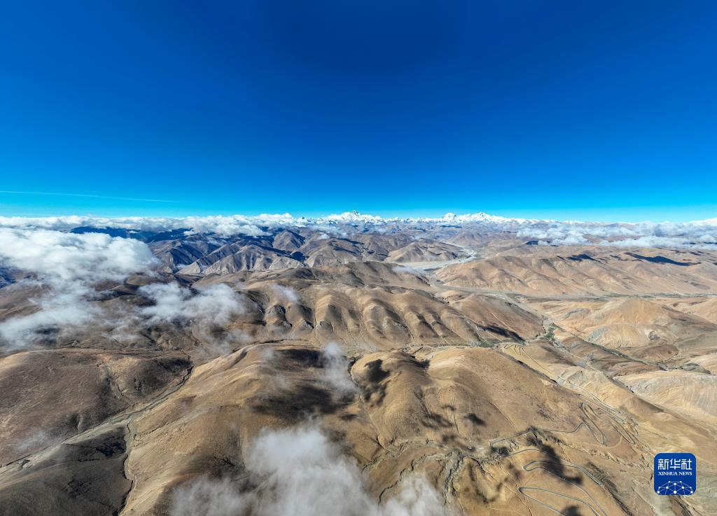 這是在海拔8000米左右高空拍攝的喜馬拉雅山脈群山(5月23日攝,無人機(jī)照片)。新華社記者 洛卓嘉措 攝