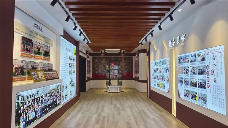 紅領(lǐng)巾講解員楚成白姆指著老照片介紹道:“這是學(xué)生當時加入少先隊時的情景,這是學(xué)校成立時的教室畫面,這張是建校初期教師自編的教材圖片?!痹谏鲜兰o七八十年代,學(xué)校組織學(xué)生成立了腰鼓隊、舞蹈隊等,學(xué)生們經(jīng)常登上大型活動的舞臺,用精彩的文藝表演展現(xiàn)著青春風采。