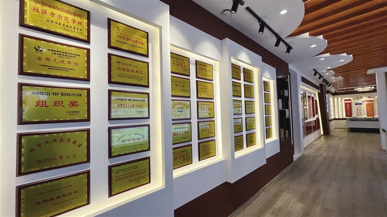 在校史館的圖片墻上,學(xué)校舉行“六一”文藝演出的照片吸引了記者的注意。從1985年羅布林卡黑白照片里孩子們歡快表演的身影,到上世紀90年代初宗角祿康公園彩色照片中孩子們慶?!傲弧眹H兒童節(jié)的文藝表演,再到1992年至2012年間,學(xué)校舉辦慶?!傲弧眹H兒童節(jié)文藝演出。20年間,學(xué)校進一步豐富特色教育,設(shè)有管樂隊、民樂特長班、手工特長班、美術(shù)特長班等,并組織管樂隊學(xué)生在布達拉宮廣場參加各類活動,為學(xué)生全面發(fā)展搭建起更廣闊的展示平臺。